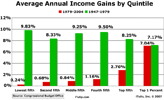 And there is the “Krugman Calculation” showing that 70% of the rise in average family income has gone to the top one percent of households over the past 30 years (ref).