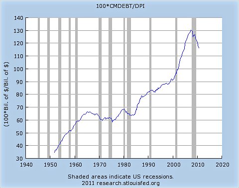 Reich points out that the GDP of America increased from $5.908 trillion in 1980 to $13,441 billion in 2011 (ref), but that the median male worker earns less today today, adjusted for inflation, than he did 30 years ago (ref). In the same article, he also notes that Americans kept spending as if their incomes had kept pace with the economy. Middle class America developed several ‘coping mechanisms’. The first was that women streamed into the workplace. Second, everyone put in more hours; males 100 hours more per year and women 200 more hours per year. And when this level of income was no longer sufficient they began accumulating debt; between 2002 – 2007 American households extracted $2.3 trillion from their homes. This run up of personal debt, that increased over time to 130% of personal income, has been graphically depicted in a Krugman article (ref).