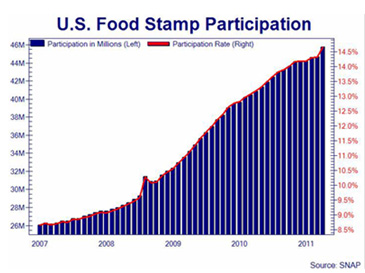 Since the Great Recession there has been a marked increase in Food Stamp participation. Currently 45.8 million people rely on them and that is anticipated to increase by an additional 22.5 million individuals bringing the total to over 68 million needy citizens.
