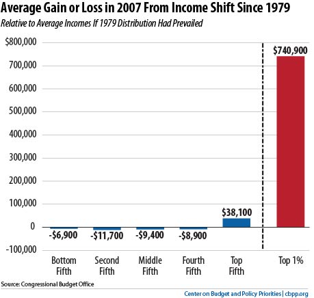 - Between 1975-2010, income of the top 0.1% of income earners quadrupled and for the top 0.01% quintupled. During this same time period worker productivity increased 80%, and yet the income shift has resulted in a shortfall of $400/week for the typical American family.